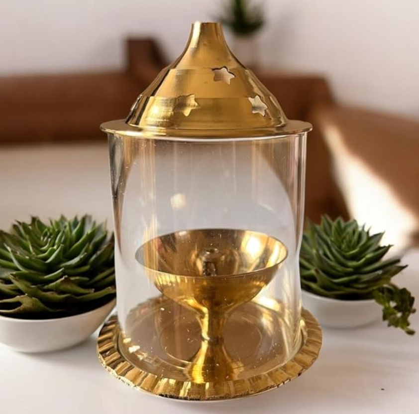 - Protective Glass Cover: The diya comes with a sturdy glass cover that shields the flame from wind and dust, ensuring it remains lit during your rituals. This feature is particularly useful for outdoor ceremonies or in spaces with drafts.