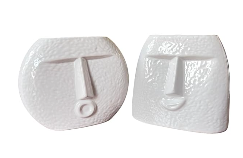 Vibhsa Ceramic Flower Vase | Set of 2 | Upbeat Face Vase 5.5 inches & Blowing Kiss Face Vase 6 inches (White, Raw Finish)