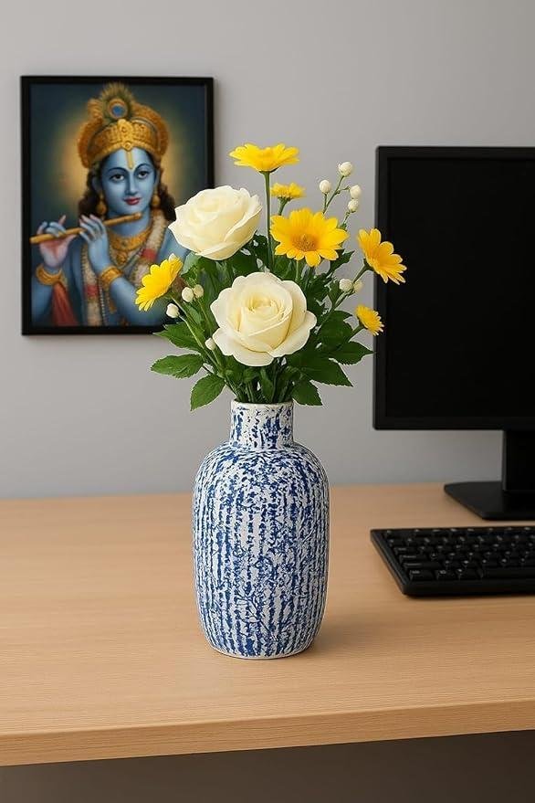 VIBHSA Decorative Flower Vase for Home Décor | Modern Tabletop Vase for Living Room, Bedroom, Office & Dining Table