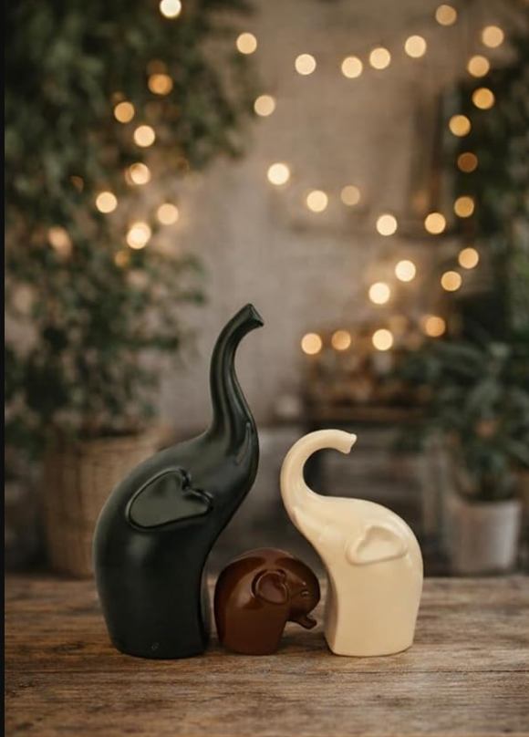 - Set of 3 Decorative Showpieces – Includes three coordinated elephant figurines designed to be displayed together or separately.