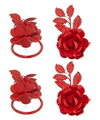 Vibhsa Napkin Holder Table Napkin Rings for Parties Wedding Everyday Dinner Decor Flower Napkin Rings Set of 4 (Red Rose)