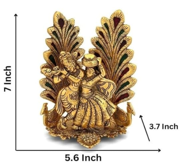 - Beautiful Idol: Handcrafted metal idol of Radha Krishna stands 8 inches tall, perfect for daily puja or as decorative home accent.