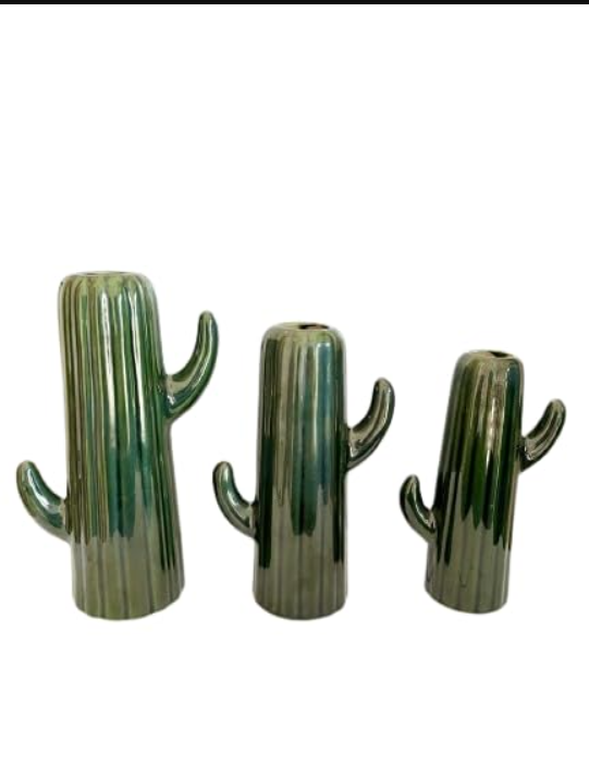 Vibhsa Set of 3 Ceramic Cactus Design Vase [Green], Modern Minimalistic Vase for Pampas Dried Flowers