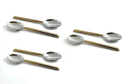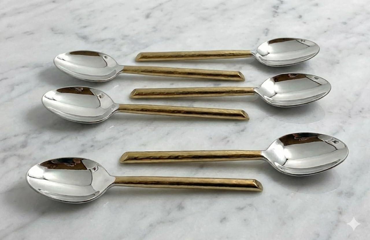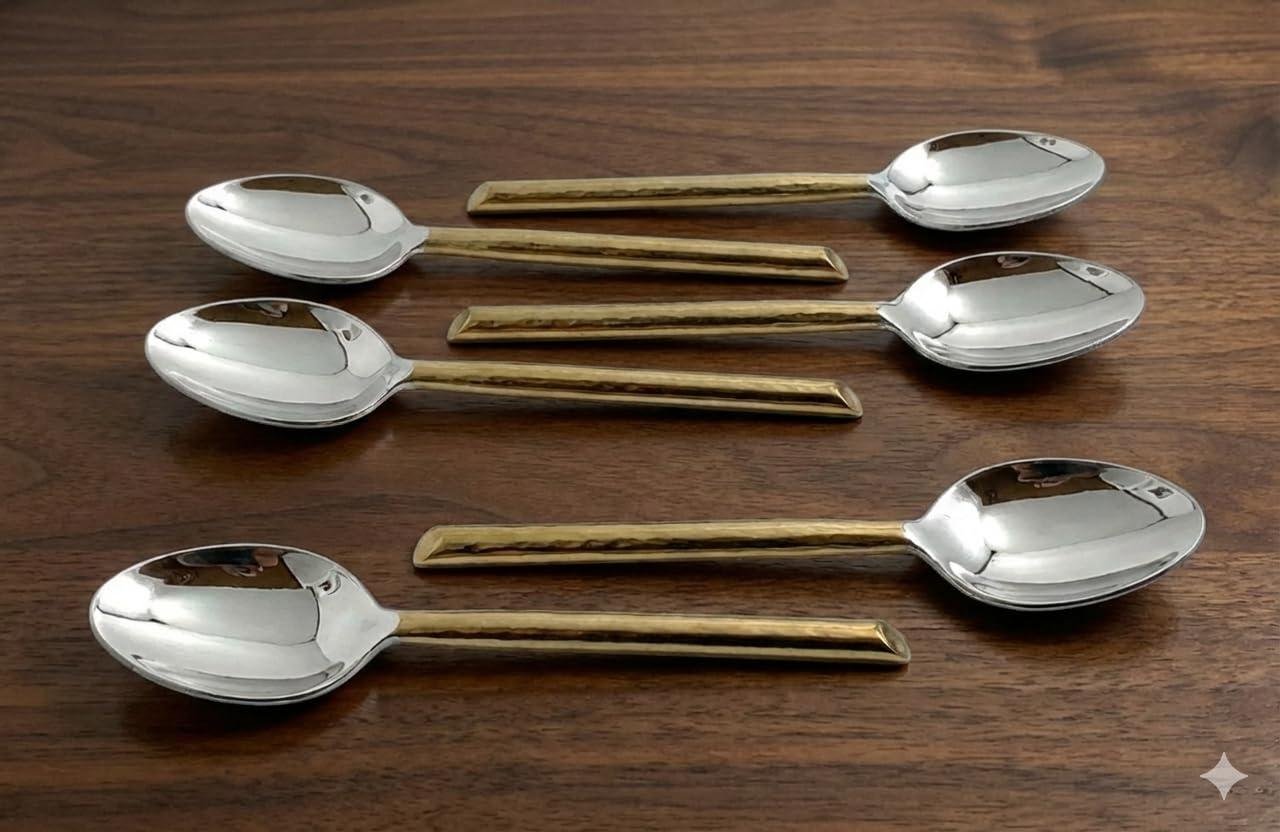 Vibhsa Stainless Steel Hammered Golden Cut Spoons Set of 6 | Handcrafted Luxury Dinner Spoons