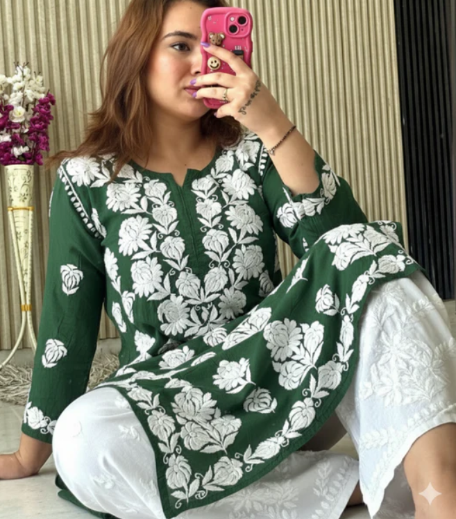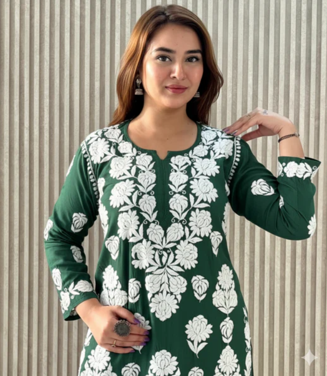 - Includes: Kurta with Chikankari Pant