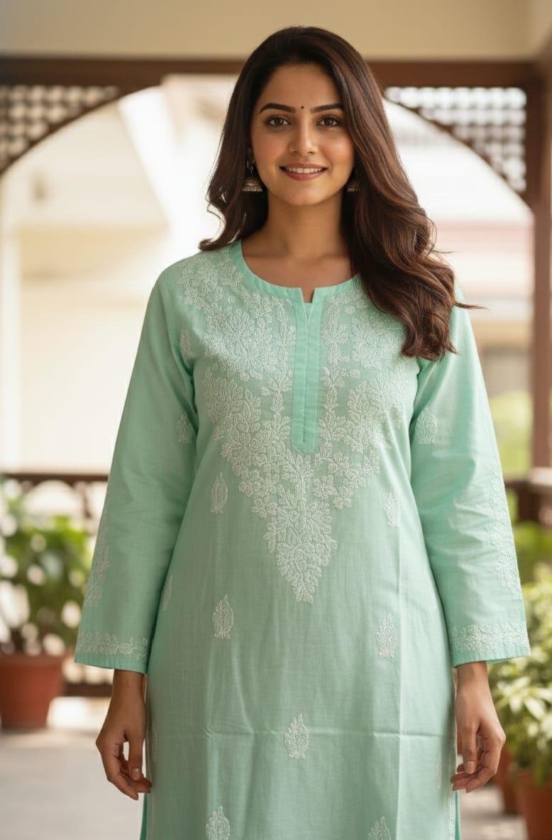 ✨ Women’s Voile Cotton Chikankari Kurta Fabric Set – Breathable, Elegant & Hand-Embroidered ✨