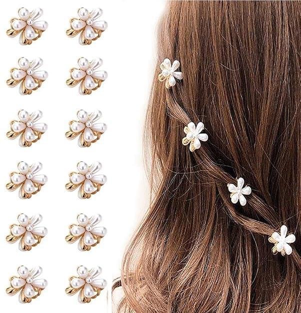 - 🤍 Set of 2 small pearl claw clips with elegant flower design