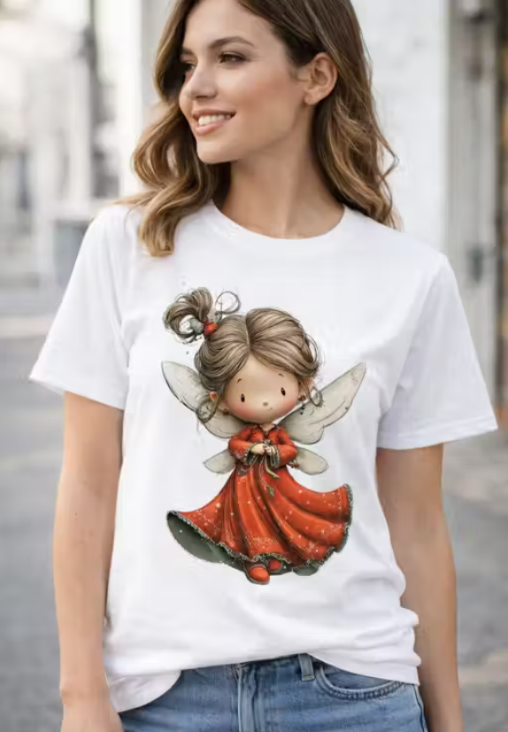Women White Cotton Printed T-Shirt Cute Fairy Girl Design Casual Wear