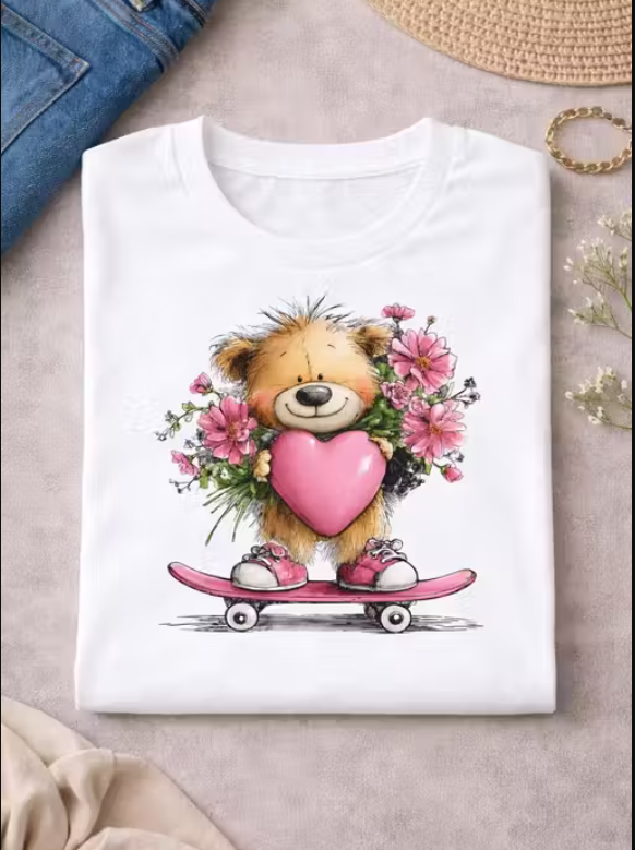 - Print: Teddy bear on skateboard with heart design