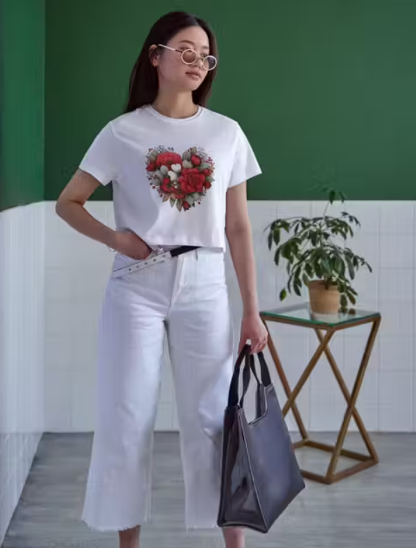 Add a touch of elegance and charm to your everyday wardrobe with this floral heart printed t-shirt for women. Crafted from soft, breathable white cotton, this stylish tee features a beautiful heart-shaped floral design, making it perfect for casual wear, outings, or daily styling. The classic round neck and comfortable regular fit ensure all-day ease while keeping your look fresh and trendy.
