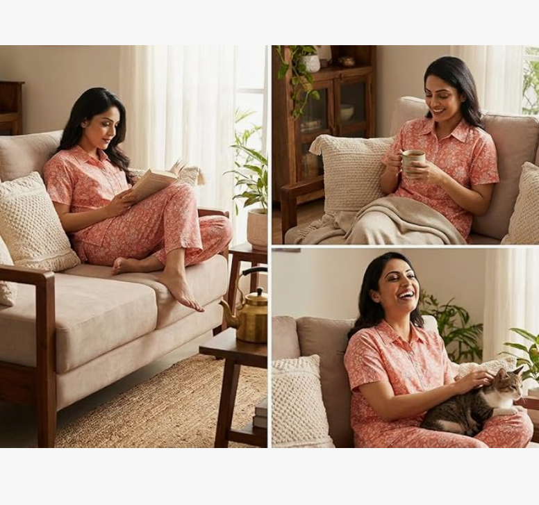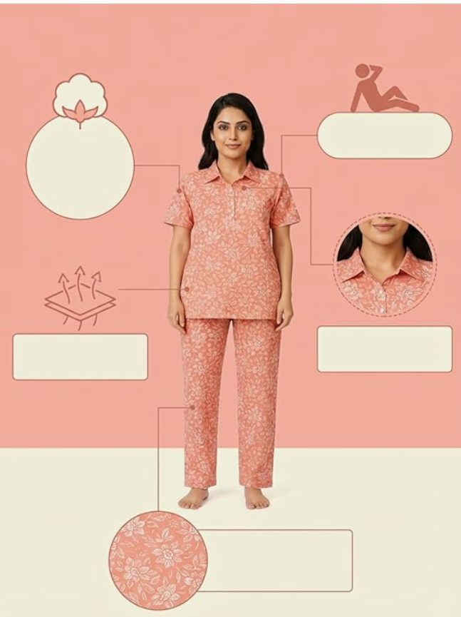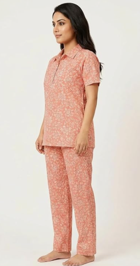 - COMFORTABLE NIGHTWEAR SET: Women's cotton nightwear set featuring a short sleeve polo collar top paired with matching pyjama bottoms for ultimate comfort during sleep and relaxation