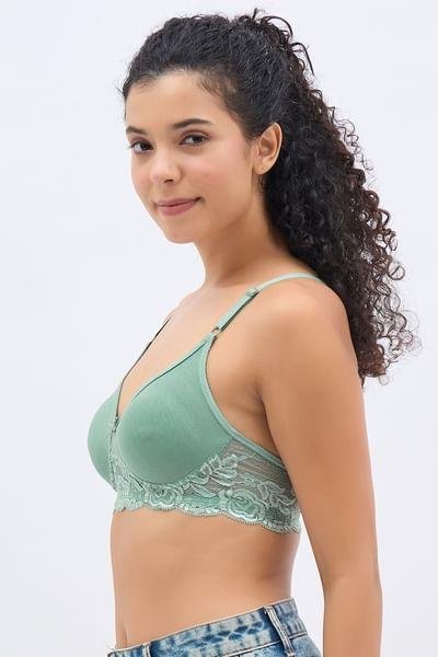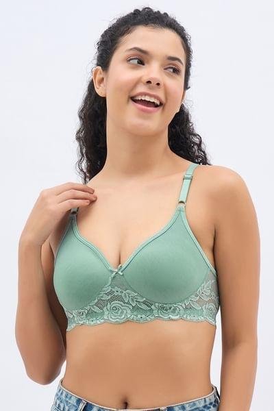 Women Lightly Non Padded Lace Bra | Soft Cotton Blend Non-Wired Bra | Comfortable Daily Wear Bra for Women & Girls