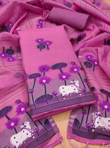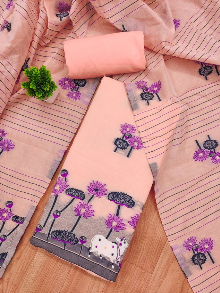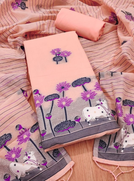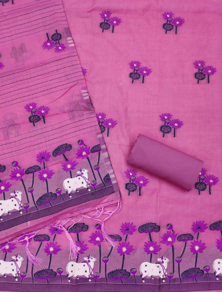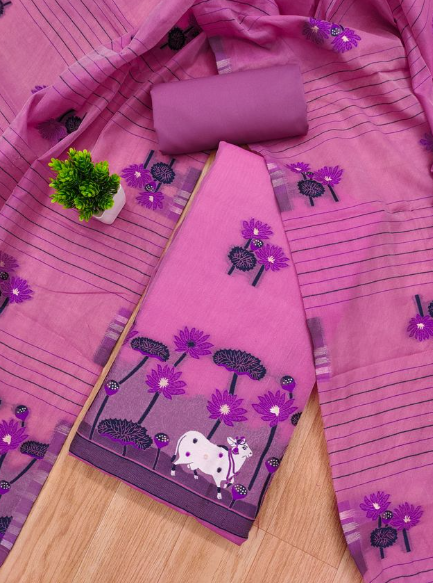 Women's Cotton Silk Unstitched Salwar Suit Dress Material With Dupatta