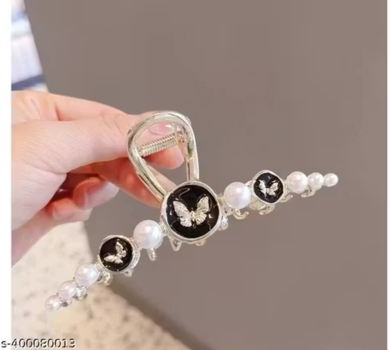 Women's Gold-Tone Butterfly Hair Claw with Simulated Pearl – Elegant Black Hair Accessory (1 Pc)