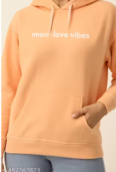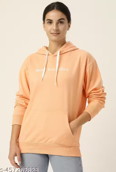 Add a pop of color to your winter wardrobe with this Orange Printed Hoodie for Women. Made from soft cotton fabric, this pullover hoodie features a bold typography print, kangaroo pockets, and an adjustable tie-up hood for everyday comfort. The cuffed sleeves and regular fit make it ideal for casual wear, winter outings, or lounging in style. Pair it with jeans or joggers for a trendy look.