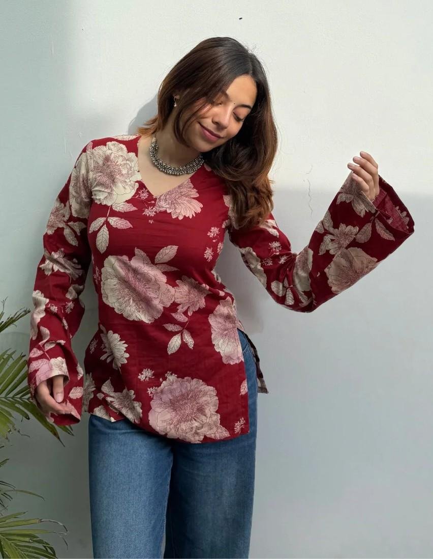 Women's Short Kurti in TopsTunic Rayon Cotton Blend