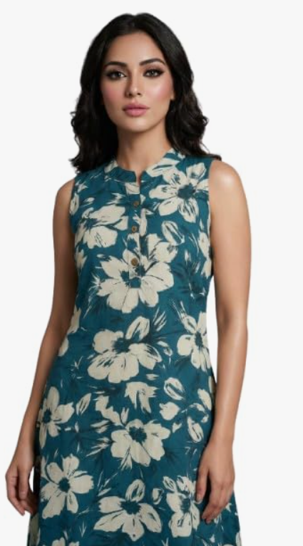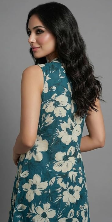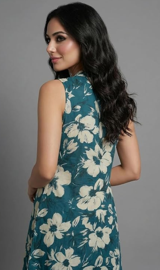 - ELEGANT FLORAL DESIGN: Features a beautiful teal blue base adorned with cream-coloured floral print, creating a sophisticated and feminine look perfect for various occasions