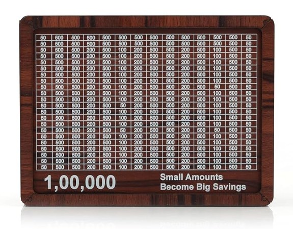 - MOTIVATIONAL SAVINGS TRACKER: Wooden money box featuring a 1 lakh (100,000) savings chart that visually tracks your progress and encourages consistent saving habits