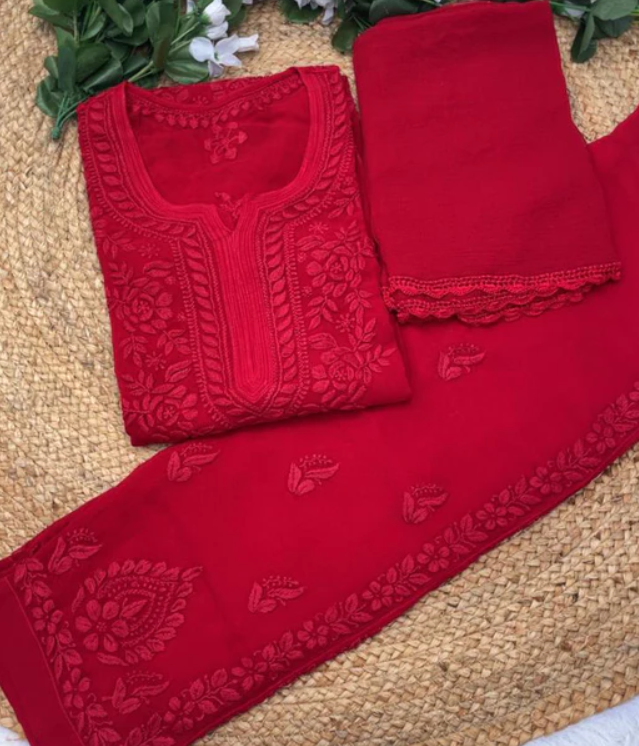 - Fabric: Premium Pure Viscose Georgette (Kurta, Pant, Dupatta & Inner)