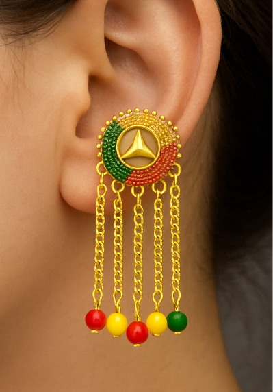 The rich yellow gold-plated finish adds a glamorous touch, while the unique design blends high-fashion inspiration with contemporary flair. Perfect for parties, evening wear, and statement looks, these earrings are sure to turn heads.