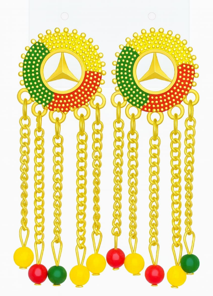 Yellow Gold-Plated Mercedes-Benz Logo Chandelier Earrings ✅