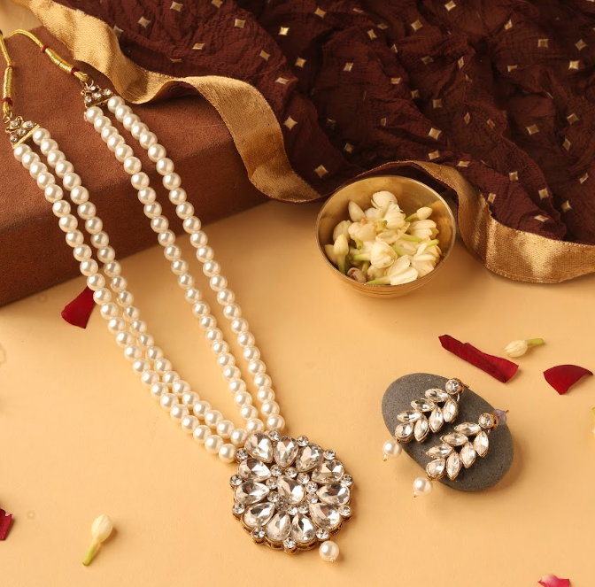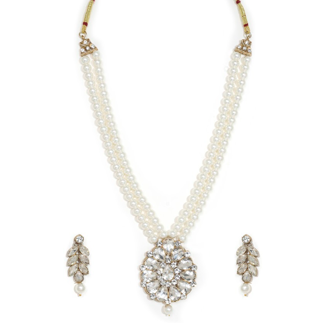 Zaveri Pearls or Kundan Pearl Multi-Layer Necklace And Earrings Set